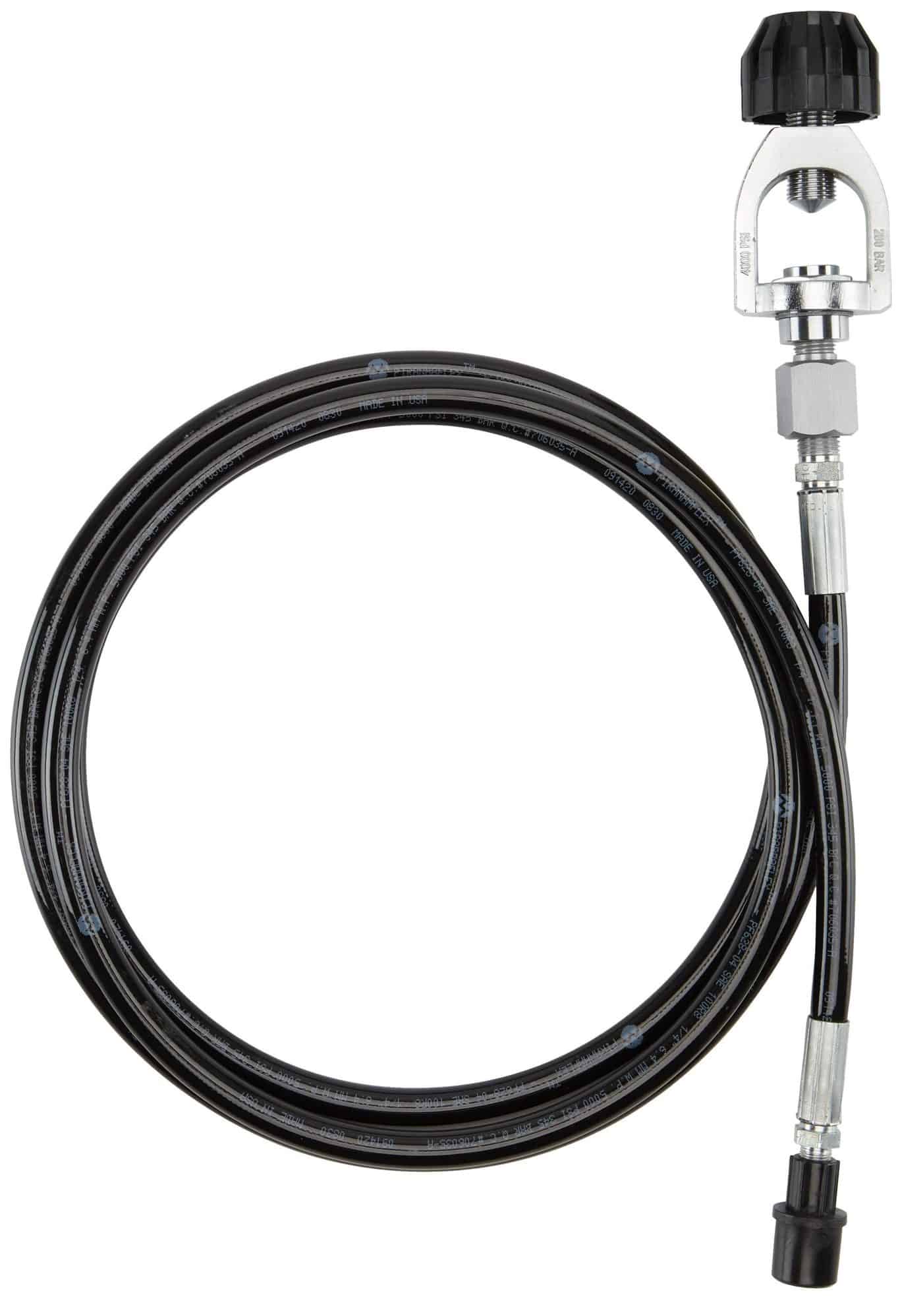 - Heavy-duty hose can handle up to 5,000 PSI.