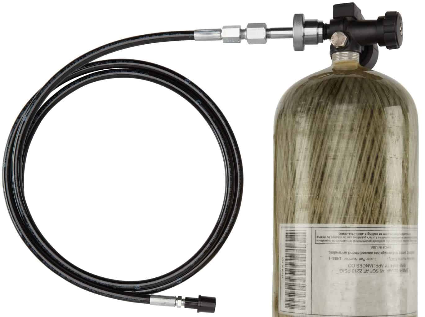 - SCBA Quick Fill Kit screws onto a standard SCBA tank thread.